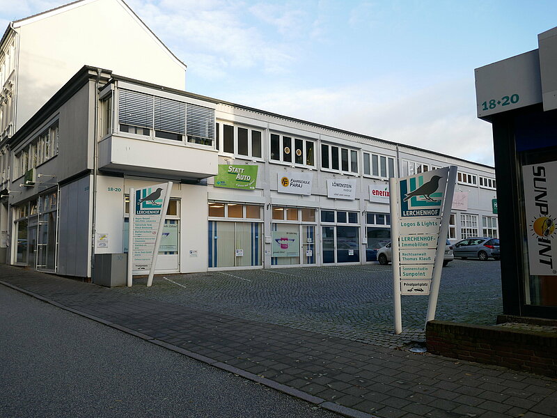 Der Lerchenhof liegt in unmittelbarer Nähe von Hauptbahnhof und Holstenstraße auf der einen Seite sowie Exerzierplatz und Elisabeth-Krankenhaus auf der anderen.